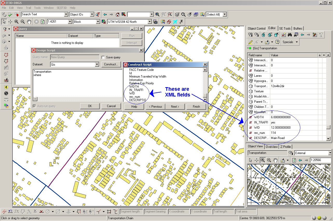The data looks and acts just like any other attribute field in the database. It can be included in the object editors and can be queried in the Query tools. You can also access and modify the attribute fields in Magik code identical to any other field. So to the end user they do not know if this data is a true physical field on the database or if it is an XML attribute.
